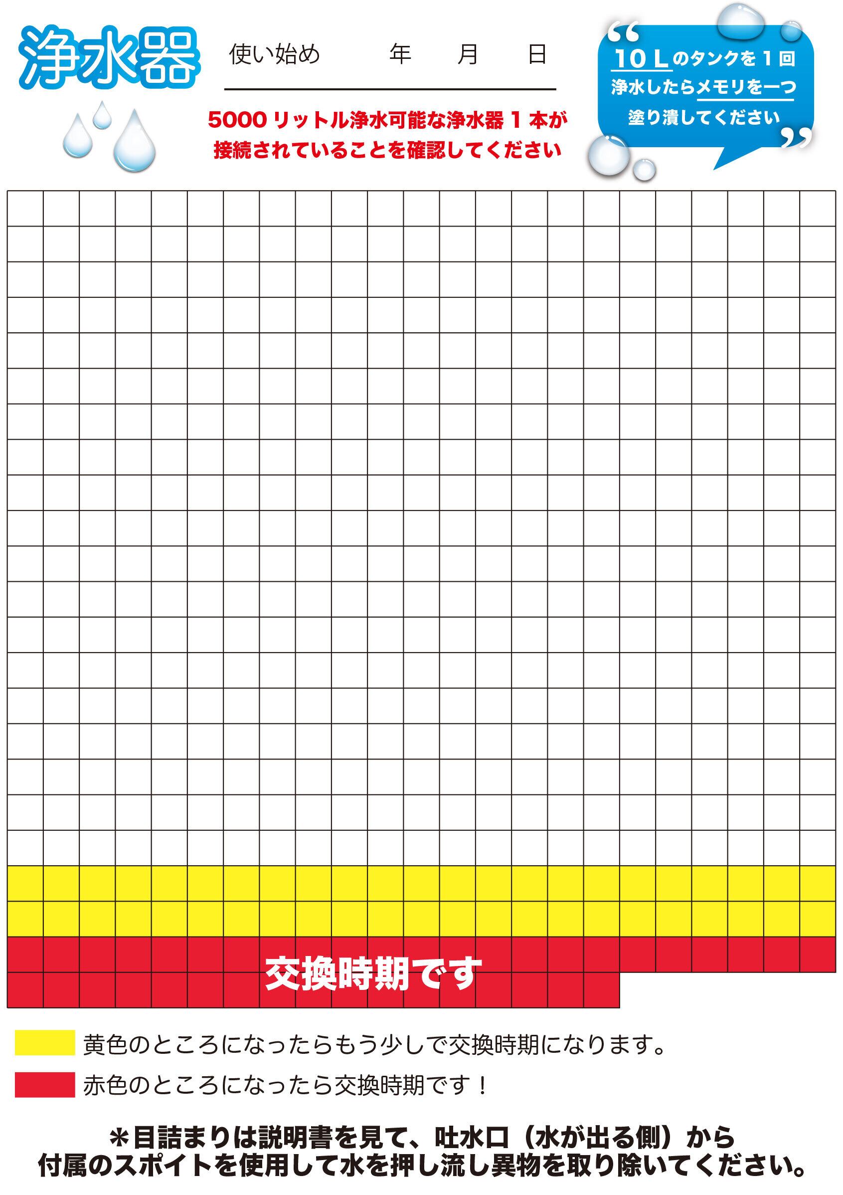 ※浄水器は家庭の蛇口に設置された浄水器と同様、使い続けることで浄水器本体内の雑菌の増殖を抑えます。1日に1回は付属のポリタンク1回分の通水を行ってください。