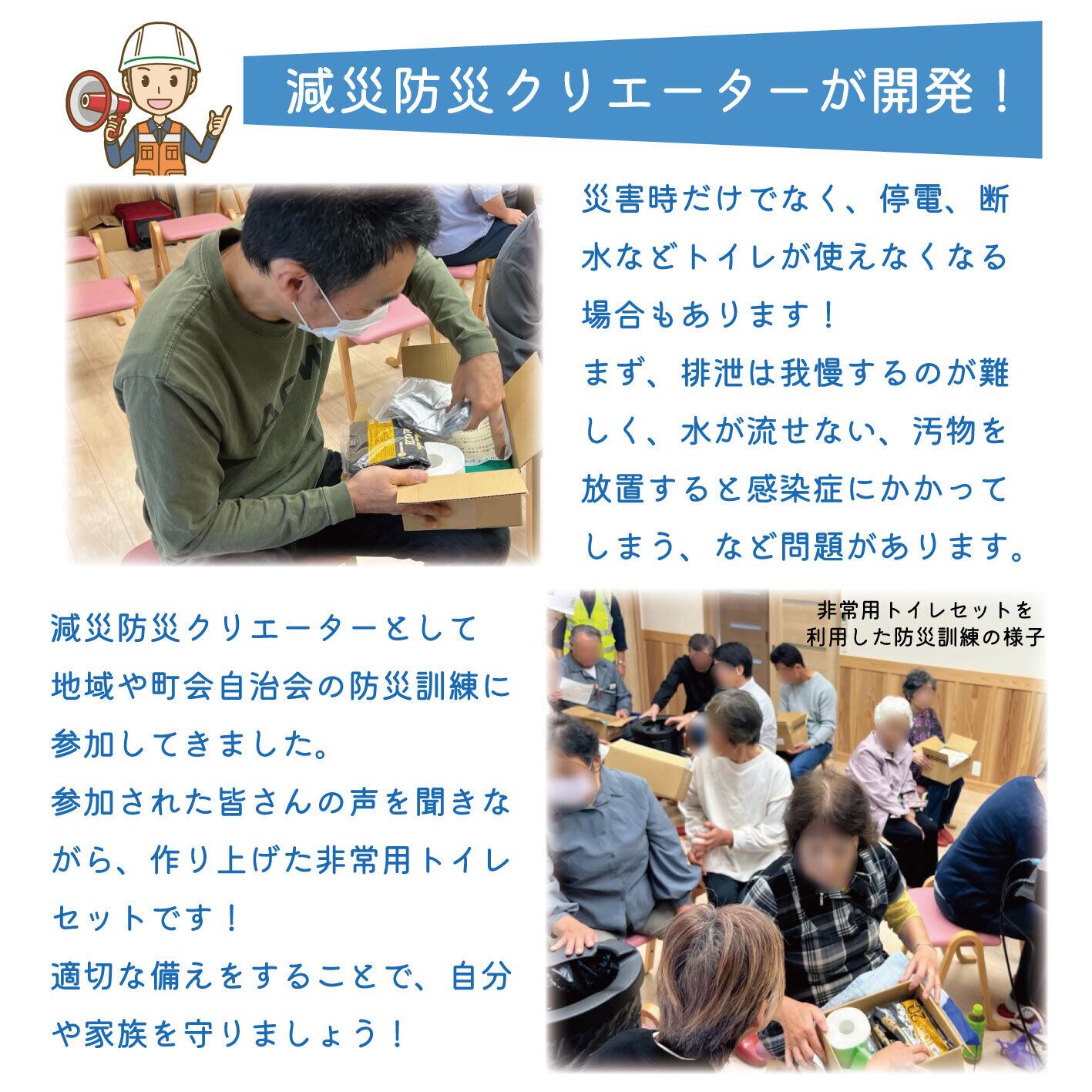 減災防災クリエイターが開発した非常用トイレセットは真空パックトイレットペーパー付き!