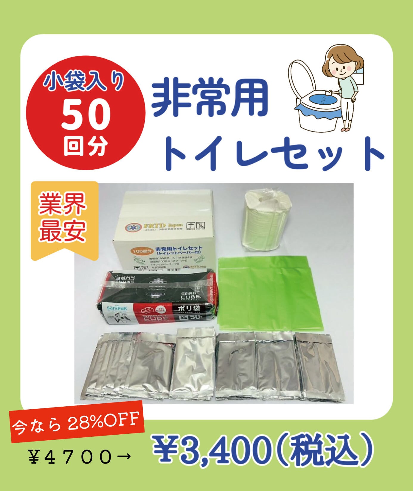 減災防災クリエイターが開発した非常用トイレセットは、真空パックトイレットペーパー付きで、安心の100回分ご用意しております!
